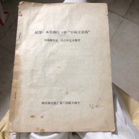 试探本草纲目中百病主治药