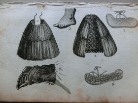 【百元包邮】1811年中国题材铜版画《蓑衣、木质凉鞋、草鞋及一名中国女性的靴子》 纸张尺寸约12.8×8.2厘米 出自法国人Bertin/Breton(伯丁/布列东)