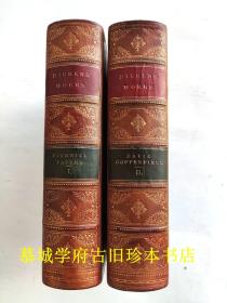 1870年DICKENS :DAVID COPPERFIELD & BLEAK HOUSE 狄更斯《大卫•科波菲尔》《荒凉山庄》3/4小牛皮 2套木刻全插图本初版本两本合订 开本超大 品相佳