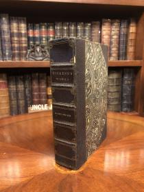 狄更斯Dickens《双城记》,附带《散闲过客》、《此路不通》等三篇。酒红色摩洛哥羊皮装帧,竹节背压花烫金。著名画师弗雷德里克·巴纳德和乔治·克鲁克香克配图。