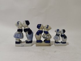 80年代老荷兰德尔夫特白釉蓝彩陶瓷亲吻的小人摆件一组(3个)