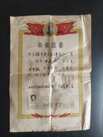 1957年上海市东昌区毕业证书