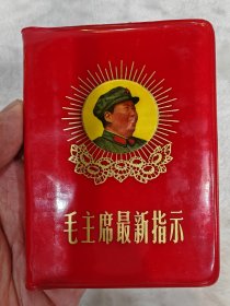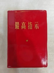 最高指示(侧脸,放光芒,七葵花)红胶皮,放光芒七朵葵花,题词完整,品相好,无涂无画;中国人民解放军新疆军区,生产建设兵团第八师政治部编印,第八师政治部印刷厂印刷,1969年二月石河子(B29)