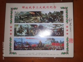 解放战争三大战役纪念涨 邮票设计家邹建军设计 签名 钤印 1枚