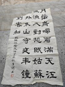 第二届书法“兰亭奖,铁岭市书协副主席,邓云凉四尺整纸书法69*139cm,软片。(保真书画),月落乌啼霜满天,江枫渔火对愁眠。姑苏城外寒山寺,夜半钟声到客船。
