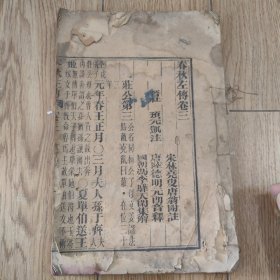 W 清 木刻 崇义书院(明正德年间建设,位于青州府治西)刻本 林尧叟唐翁著 《春秋左传杜林合注》 卷一 卷二 存一厚册!!!