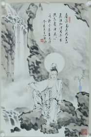 萧和老师观音作品 南京白云堂画廊 萧和《观音》137x61cm