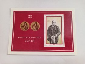 东德邮票 东德小型张 1M 1970年列宁诞辰100周年 列宁 拿着报纸的列宁 马克思、恩格斯头像 新票未使用 德国小型张 列宁是苏俄(世界上第一个社会主义国家)和苏联的主要缔造者、布尔什维克党的创始人。是著名的马克思主义者,无产阶级革命家、政治家、理论家、思想家。他继承了马克思主义,并与俄国革命相结合形成列宁主义,被全世界的共产主义者普遍认同为"国际无产阶级革命的伟大导师和精神领袖"