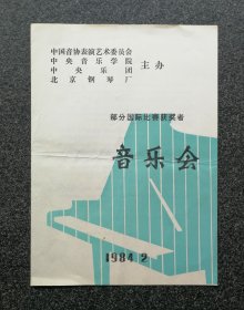 节目单 1984年 部分国际比赛获奖者音乐会。何红英 傅海静 梁宁 韦丹文 薛伟。缺一页