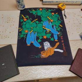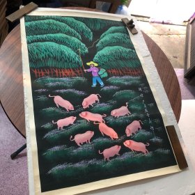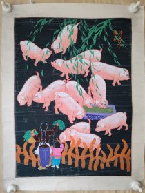 陕西户县农民画 <猪官户县>农民画一级画家张青义作 原画真迹(74×50cm)包真