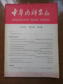 《中华内科杂志》1978年第十七卷第六期,16开,品相如图