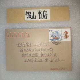 实寄封:重庆(据模糊邮戳大概)→重庆市渝中区双钢路3号科协大厦电脑报.贴吉祥如意个性化邮票80分 副票重庆江北国际机场