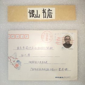 实寄封:广西桂林市西凤路→重庆市渝中区双钢路3号科协大厦电脑报.贴2001-11中国共产党早期领导人(一)何叔衡80分邮票.2002年