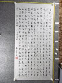 B13525号书法 录千字文局部 138×69cm 作者:刘昌华 号古稀学童 别名文刀闲人 1932年4月生于江西省新余市 国家一级书法师 现为江西新余老年书画协会会员 中国老年书画学会会员 作品入编《中国书画大辞典》《中国书画名家收藏大辞典》等典籍 天地玄黄,宇宙洪荒。日月盈昃,辰宿列张。寒来暑往,秋收冬藏。闰余成岁,律吕调阳。云腾致雨,露结为霜。金生丽水,玉出昆冈。剑号巨阙,珠称夜光。