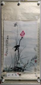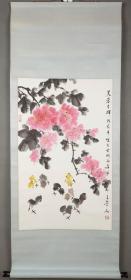 【同一上款:静波】著名书画家、曾任中国书协理事、陕西美协理事 王崇人 1988年国画《芙蓉生辉》一幅(纸本立轴,画心约4.4平尺,钤印:崇人书画、其乐无极) HXTX386331