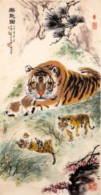 同一上款:著名画家、益州书画院副院长 陶培麟 1995年国画《幸福图》一幅(维勤上款,纸本托片,画心约27平尺,钤印:陶、培麟、山君述、威镇百兽)HXTX386246
