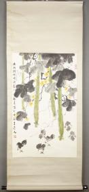 【同一上款:静波】著名书画家、曾任中国书协理事、陕西美协理事 王崇人 1988年国画《丝瓜雏嬉图》一幅(纸本立轴,画心约4.4平尺,钤印:崇人书画、其乐无极) HXTX386334