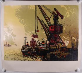 同一来源:著名版画家、历任安徽芜湖书画院副院长、安徽水彩画研究会副会长 易振生1964年套色版画作品《新港》一幅(拍品曾参加过重要展览或者出版过,尺寸:60*82cm)HXTX335932