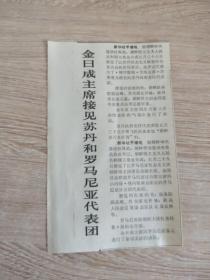 剪贴报纸——金日成主席接见苏丹和罗马尼亚代表团