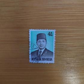 外国邮票 印度尼西亚邮票名人苏丹头像 信销1枚 如图