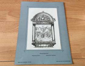 【丢勒】1887年铜版蚀刻版画《祭坛画:崇拜》(Allerheiligenbild)-- 出自德国文艺复兴美术巨匠,阿尔布雷特·丢勒(Albrecht Dürer)于1508年为12兄弟会所作油画的原始画稿(原始素描)-- 蚀刻雕刻师:Leon Gaucherel(法国,1816–1886)-- 维也纳艺术画廊 -- 版画23.5*16厘米,手工裱粘,纸张尺寸34*25厘米