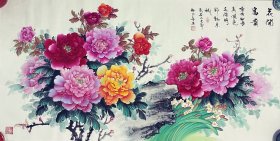 牡丹,花开富贵,小写意画法,皴法点染,纯手绘,假一赔万,终身保真,都是本人精心收藏的,国家一级美术师、山东省美协赵春英老师的原创大作,老师的牡丹画的不亚于中美协老师,实际画的比照片拍出来要漂亮的多,照相光线不好,笔法苍劲有力,花瓣画的很逼真,行云流水。尺寸:1.8米×70公分的,小六尺整张的,家里客厅,餐厅,卧室,书房都可悬挂,非常合适,非常大气,要想人前显贵,必得花开富贵,闭眼入,真的特别好看。