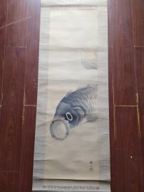 田村石堤,1876—?(明治9—?)名英贞。爱媛县生人。从师川端玉章学圆山派绘画,涉猎古今名迹,尤以花鸟画为精。作品多次在美术展中获奖,有作品被选为御用品。【风筝鱼图】绢本