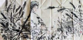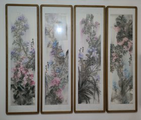 中国美协会员,中国画坛 97 百杰画家,辽宁艺术学院教授任恒泉四尺四条屏。单条净尺寸:约:138x35 公分左右。 稀少罕见精品创作。珍品。保真迹。软片装框。邮寄不带框子。