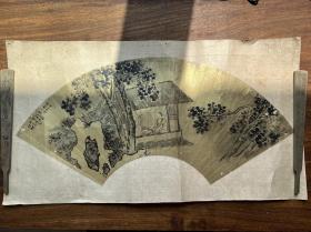 【铁牍精舍】【名家书画】【画3-24】民国绫裱清何翀泥金《秋雨梧桐夜读书》扇面镜片,53x19cm。何翀(1808-1884)原名汉冲,字其鸾,号丹山居士,又号烟桥老人、七十二峰山人,广东南海镇涌堡烟桥乡人。为19世纪中期活跃于广东画坛的职业画家,善于花鸟、人物,弟子众多。其创造的花鸟画风格,成为晚晴广东花鸟画从疏放写意逐渐转入“居派”撞水撞粉风格的先声。