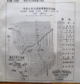 民国宁夏小松山铬铁矿区地质图:上田、壁律图卡、白土山、青稞沟、清水河。小松山至宁夏交通、小松山周边城镇:定远营、冲口堡、平罗、义克尔。散张、尺寸品相见图、折寄。民国宁夏小松山铬铁矿区地理史料。
