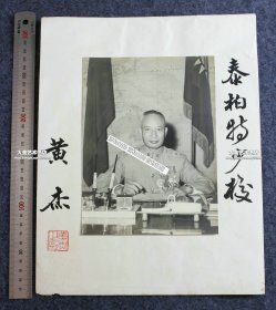 1950年代国民党陆军上将黄杰将军亲笔签赠肖像老照片一张,照片20.1X14.8厘米,泛银,粘贴在31.5X24.5厘米的册页纸卡上。湖南长沙人,早年就读长沙岳云中学、湖南省立第一中学。1924年考入黄埔军校第一期,解放前任湖南省政府主席兼第1兵团司令官和湖南绥靖总司令等。