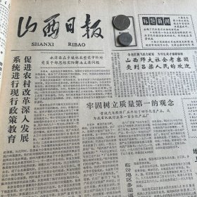 【抗日战争专题报道】头版头条!永济县。山西师范大学。西山矿务局白家庄矿黄冶坑举行开工典礼!平陆县。全国优秀班主任、介休中学范世选。北大荒纪行。朱总实力和山西青年抗日决死队的成长,薄一波。程子华。响堂铺之战,李志宽。贺龙。杨桂珍。《山西日报》