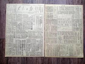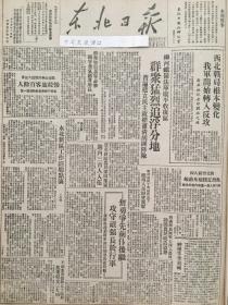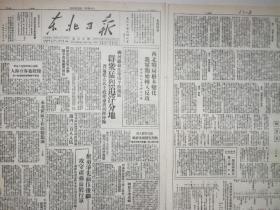 东北日报 1947年6月2日 辽东前线我军收复海龙及朝阳镇锦溪克蛤蟆山煤矿,东北一年.新华社社论,追击王牌军.记蒋军112团的覆灭,桦甸我军神枪手击落蒋机一架,柳泉井春耕总结,东北铁路各线旅客列车时刻,交通牌.生产牌.运动牌.香烟广告,