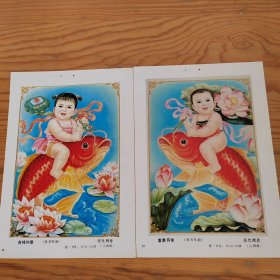 年画缩样(福寿安康 富贵有余 另一面千里走单骑 吉祥如意福寿双全)16开