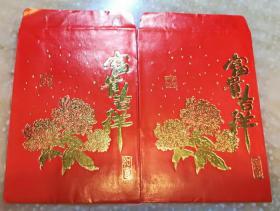 旧利是封 富贵吉祥如意牡丹花红包封一对2个旧封套收藏保真品H5