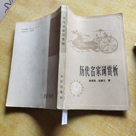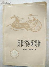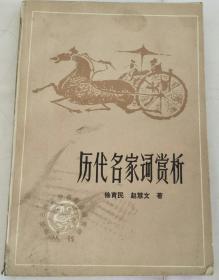 历代名家词赏析 (徐育民/赵慧文,北京出版社1982)总括了历代名家的菁华名作,编选聚萃,赏析精当,是集解读、背诵、查阅、收藏于一体,人人必读,家家须备的工具书。精选从唐至晚清的名家名作.宋词因另有专集,只选几篇作为代表.历代词如浩瀚的海洋,本书所选挂一漏万,不过是大海微小的一勺.词的赏析,重在努力发掘这些名作厚重精深的内涵,剖析这些名作艺术表现的精彩卓越,以便和读者一起领略这些名作的隽永韵味
