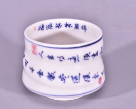 8-90年代 手绘青花李白将进酒罐子 特惠338 保真老旧货,包手绘非常漂亮字画一体,直径25高22 整体完整底部款很牛,边上一圈烧制干纹没什么影响,喜欢来吧特惠338包邮不刀