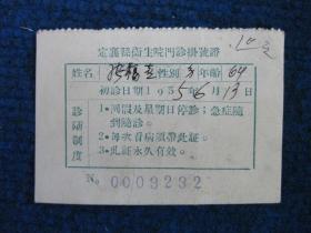 1955年定襄县卫生院门诊挂号证