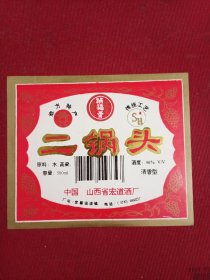 二锅头酒标。山西省定襄县宏道镇
