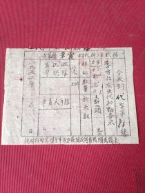 定襄县东霍村代耕工粮收据。1951年