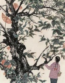石鲁 采桑图 镜心40x51厘米