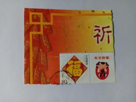 个性化邮票 五福临门 福字邮票 80分 恭贺新春 盖有“石家庄”戳记 带边
