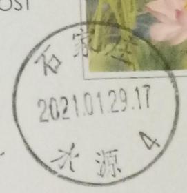 实寄片 盖销 石家庄-水源4 2021.01.29 日戳