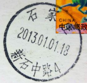 实寄片 盖销 石家庄-新石中路4 2013.01.01 日戳