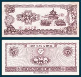 天坛图练功券 石家庄印蓝色直线底纹,左ⅨⅢ红序码