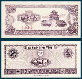 天坛图练功券 石家庄印褐色直线底纹,左红7位卡码(1)