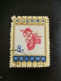 编号邮票86-90《儿童歌舞》散票N90《长鼓舞(朝鲜族)》,信销中品