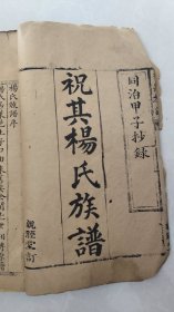 山东济南莱芜家谱文献,手稿祝其杨氏族谱大开本一厚册全,十二世杨懋官续修例授修职佐郎附贡生候选训导,书法漂亮精美,地方史文献研究价值较高!!同治甲子抄錄!与民国石印两册一套杨氏族谱为一家,