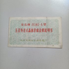葵花牌JS502-A型五管外差式晶体管收音机说明书