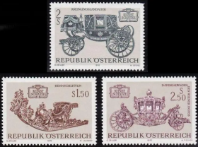 奥地利邮票ZA16,1972年瓦根贝格艺术珍藏王宫旧式马车,3全